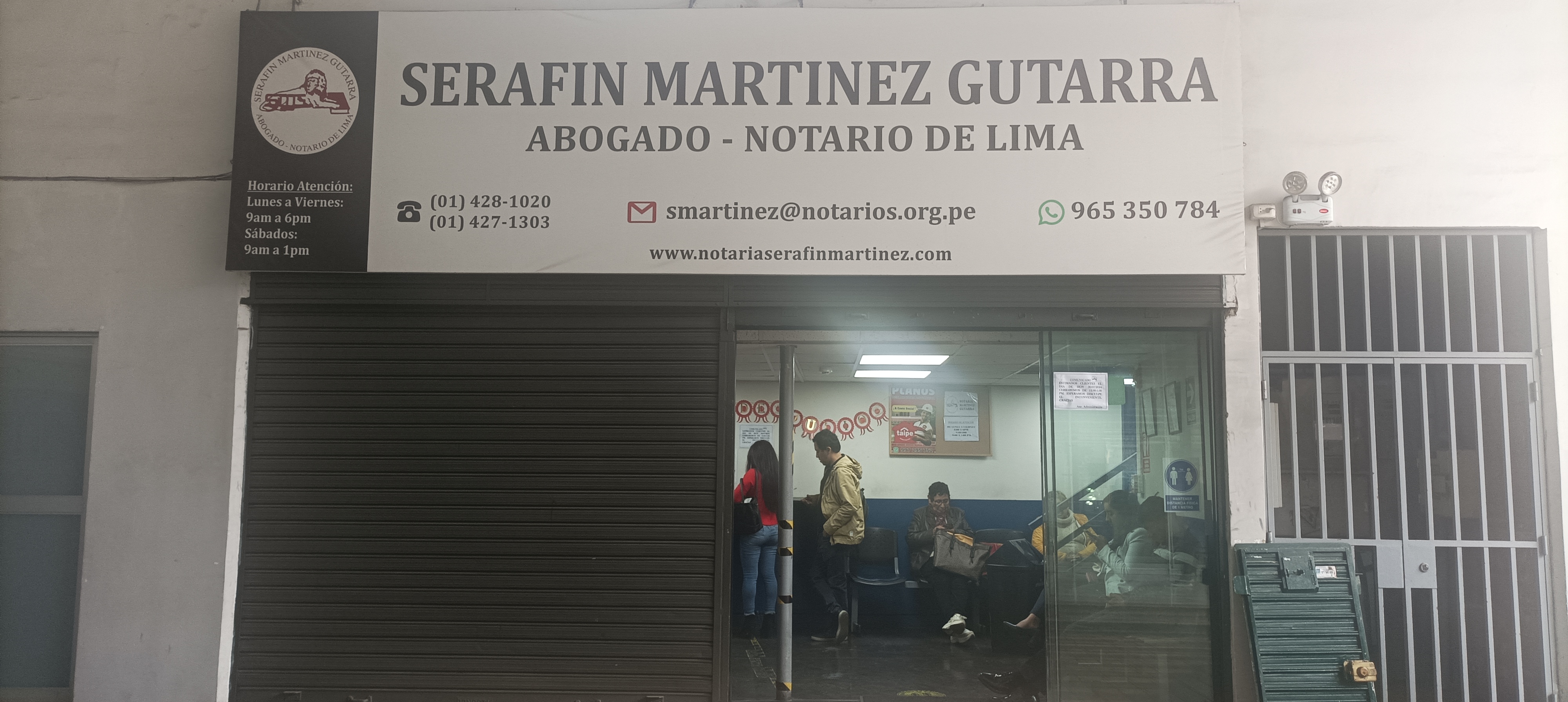 Nacido en Huánuco, el Notario Serafin Martinez Gutarra, se graduó como ABOGADO en la Facultad de Derecho y Ciencias Políticas de la Universidad San Martín de Porres, ha seguido estudios de Maestria en Derecho Civil y Comercial en la Universidad Nacional Hermilio Valdizan y cursado estudios de Doctorado en Derecho Publico la Universidad de Salamanca – España.